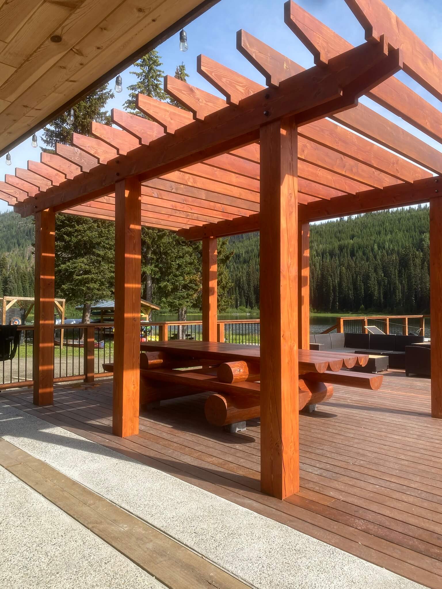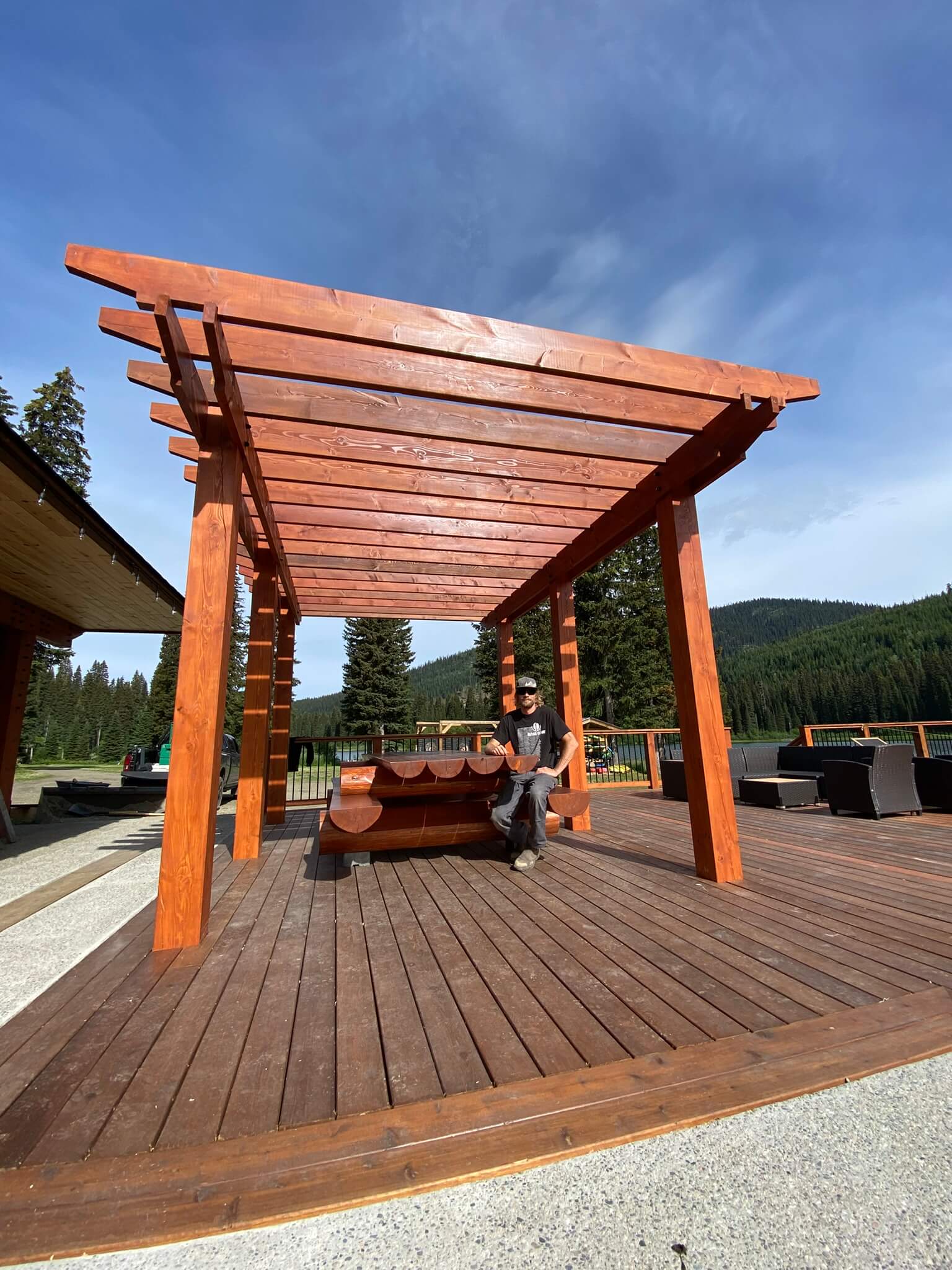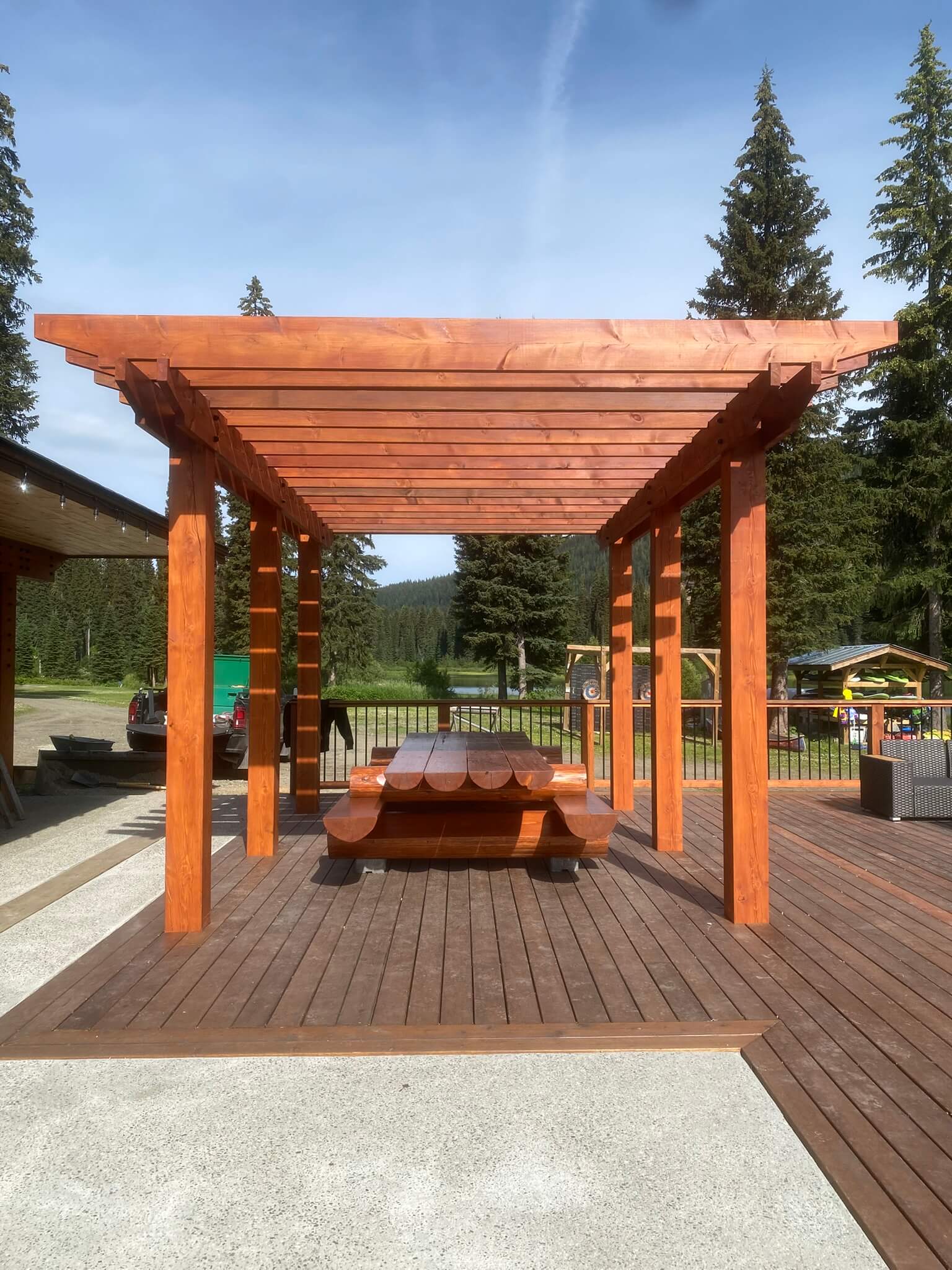 This project included a pergola built on an existing deck with a hand made picnic table.
